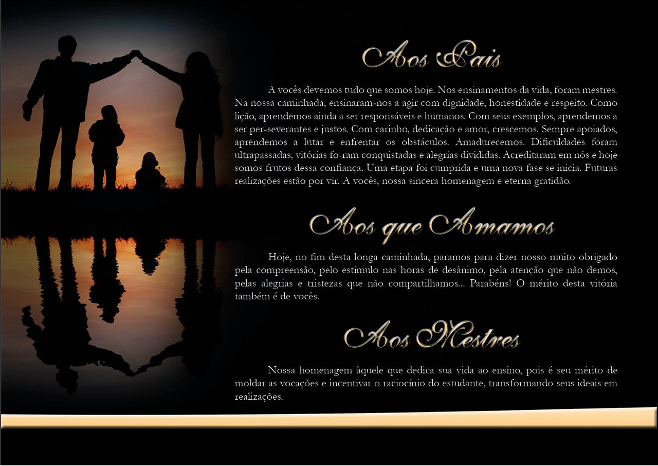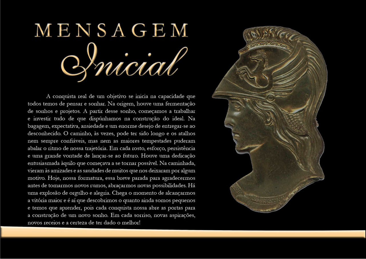 Na primeira página do convite, temos o formando, com sua mensagem e sua foto.