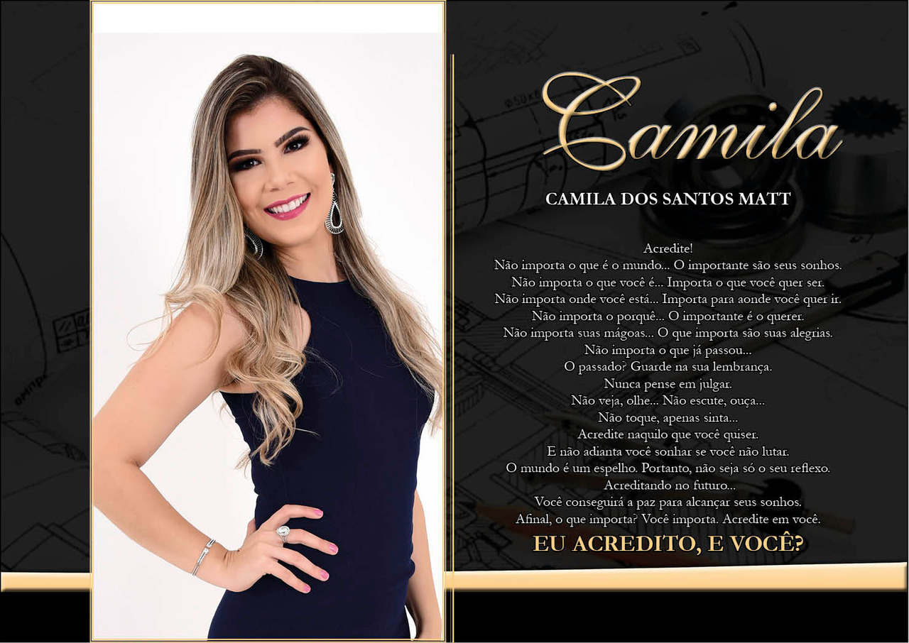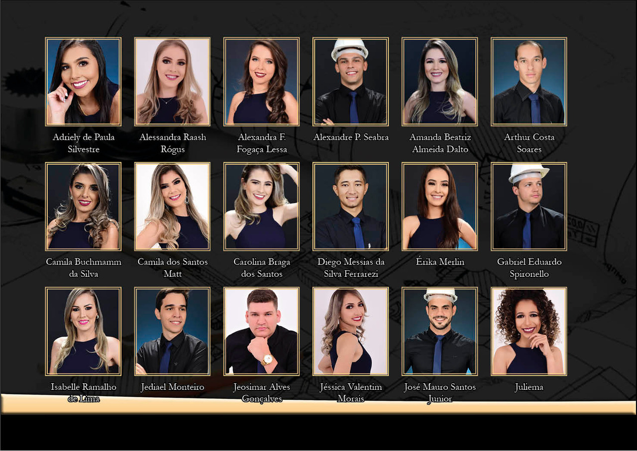 A comissão de formatura é algo importante no convite, e também não poderia ficar de fora, tendo em destaque a mensagem, os nomes e as fotos dos mesmos.