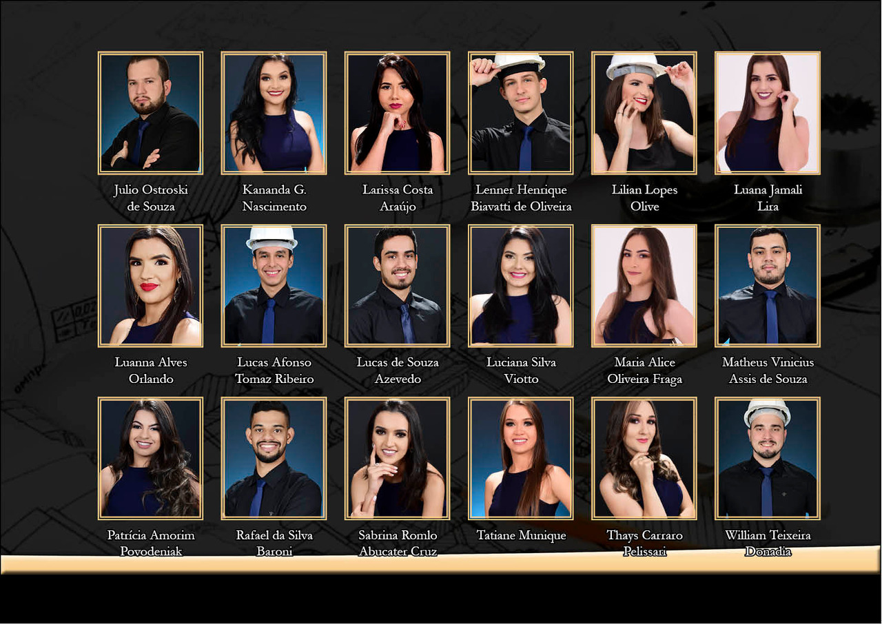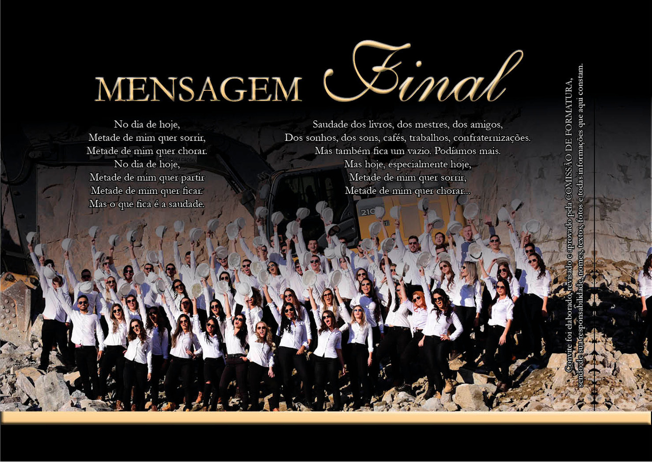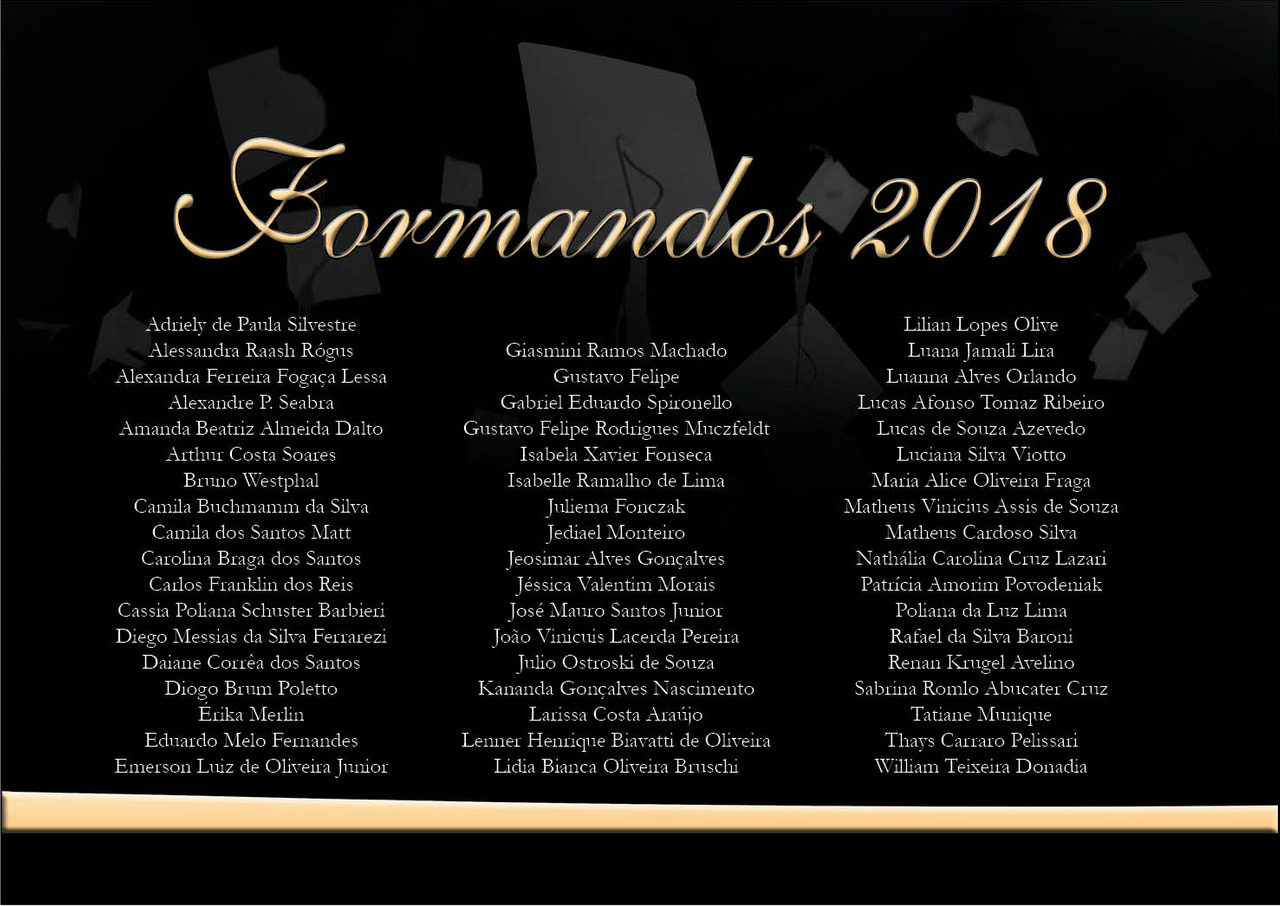 Ao centro do convite nós temos a lista dos formandos, ano de formação e uma foto da turma.